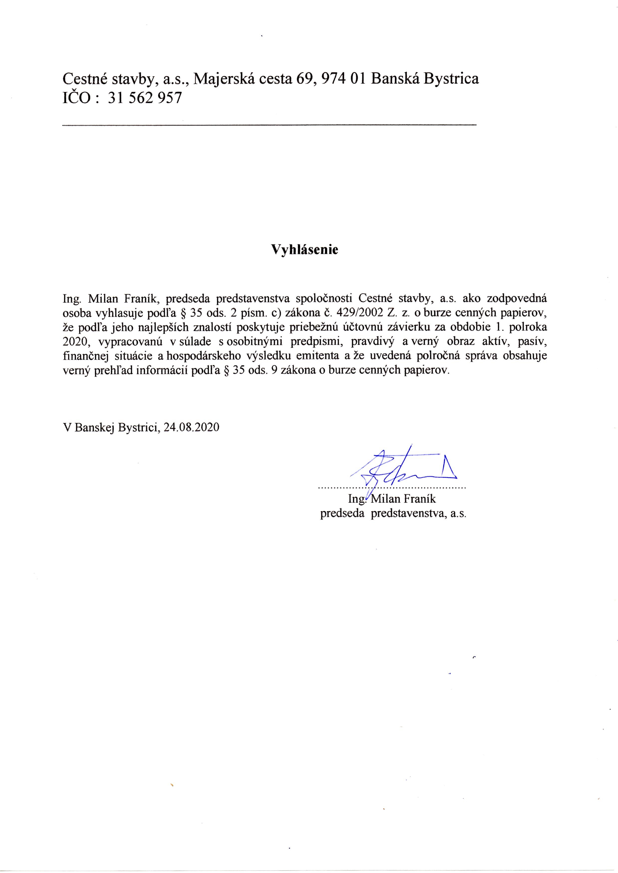 Vyhlásenie predsedu predstavenstva 1. polrok 2020